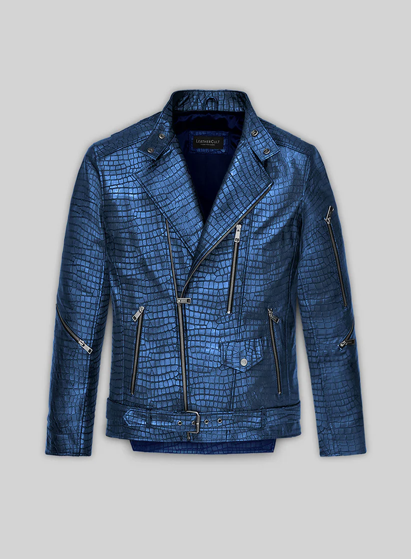 Phantom Croc Metallic Blue Leather Jacket