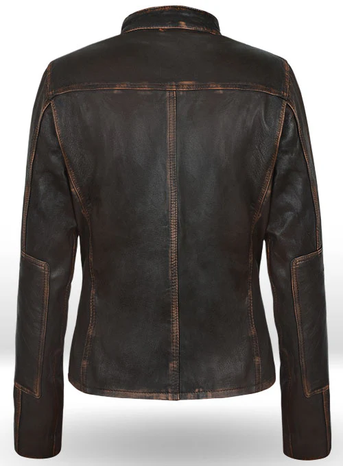 Home Leather Jackets Rubbed Dark Brown Washed Alicia 88 Minutes Leather Jacket
