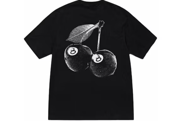 The Stussy Cherries Tee Black adds a touch of playful creativity to the traditional streetwear silhouette.Stussy Cloths designed on a clean black background, this t-shirt features a large cherries graphic in tandem with Stussy logotype on the top, giving the shirt a crisp look. It is made of high-quality soft cotton which makes it comfortable to breathe in and fits casually so that it can be worn everyday. Classic crew neck and heavyweight fabric retains shape and print quality. Can be paired with jeans, cargos or layered, this tee is your best friend for casual street style or even your weekend uniform looks. The Stussy Shirt is the ideal choice for fans of contemporary urban style, delivering instant personality, all-day comfort and so much streetwear cred to your wardrobe.